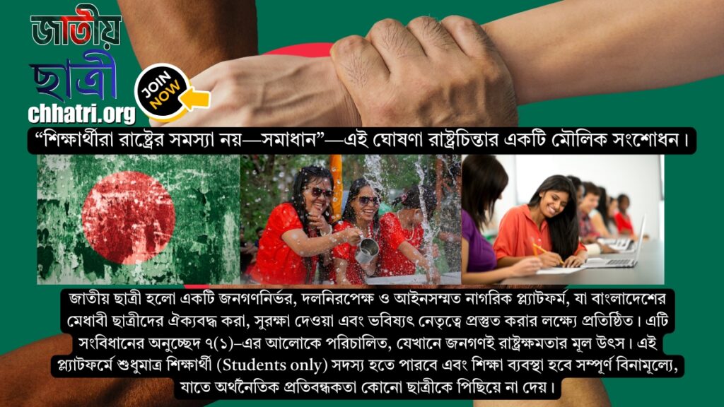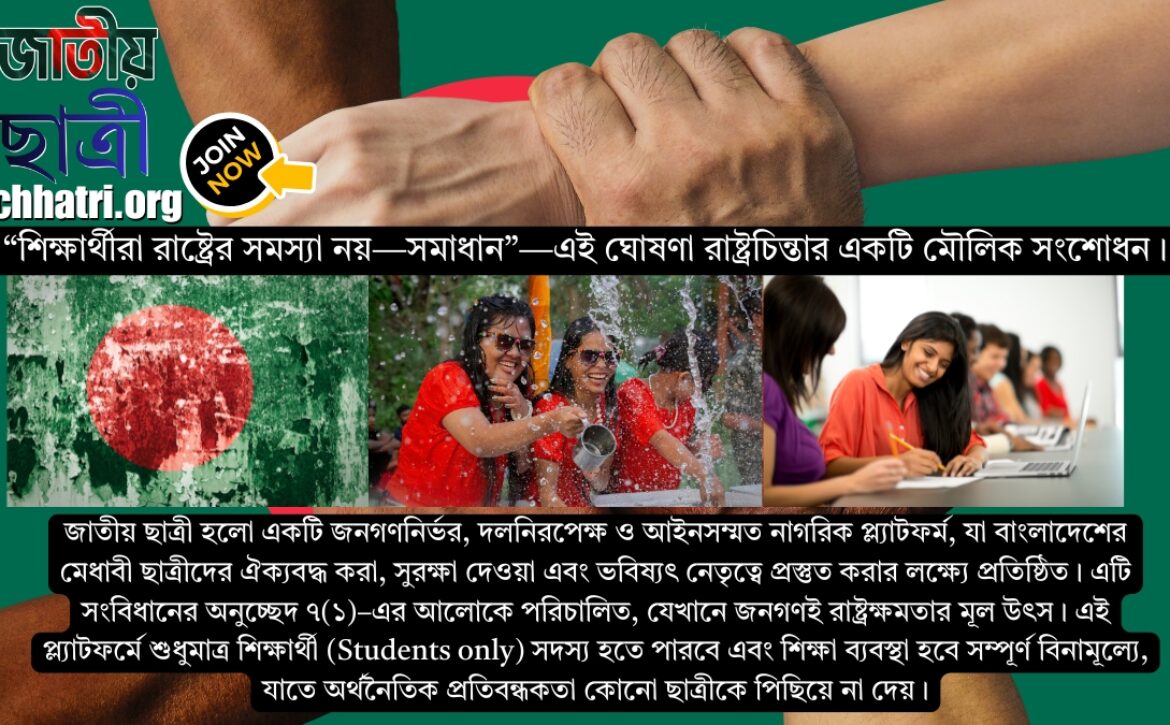 শিক্ষার্থীরা রাষ্ট্রের সমস্যা নয়—সমাধান—এই ঘোষণা রাষ্ট্রচিন্তার একটি মৌলিক সংশোধন।জাতীয় ছাত্রী